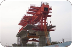 Hydraulic jacks are used to maintain the level of Launching gantry.Once launching gantry is successfully installed, segments shall be delivered to site via multi-axle trailer.Segment shall be lifted one at each time via our hydraulic jacks and attach to launching gantry via lifting bars and bring to position the slider beam. Next segment shall be connected to the previous segment by bar and jack system to ensure the perfect fit. Epoxy glue shall be used at the joint of the two segments. Similar process shall be carried out until all segments for the particular span have been erected, connected and glued. Launching gantry shall support the whole of segments for the entire span prior to next operation.